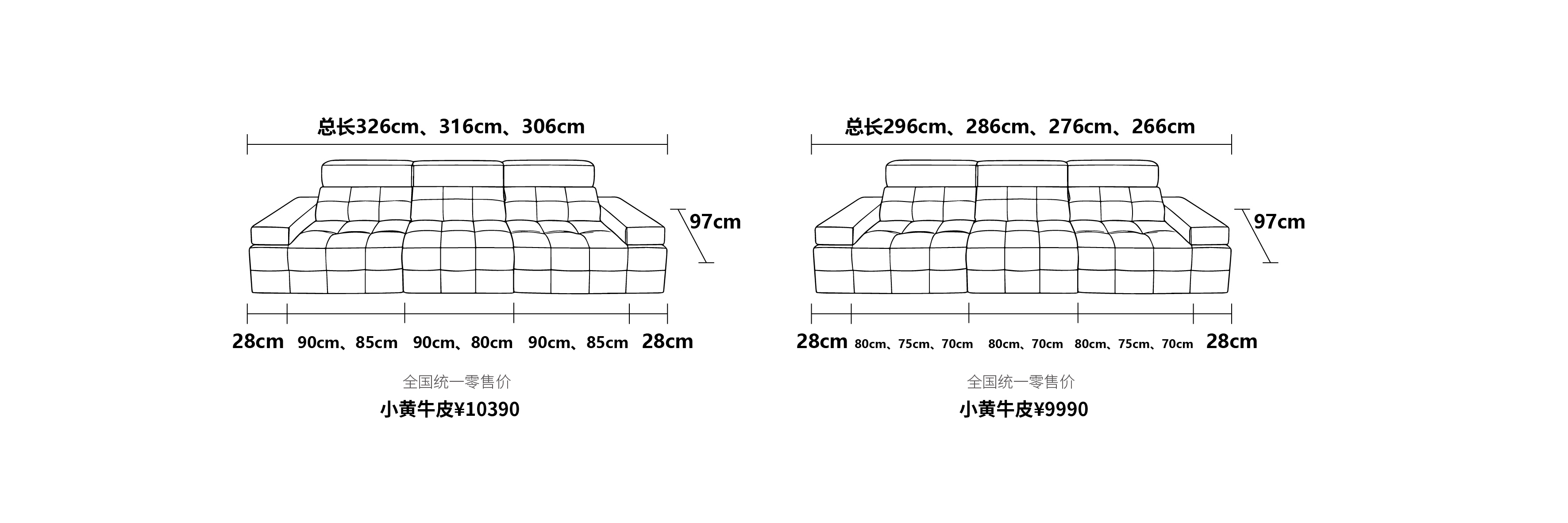 3、产品下单举例说明:本产品定做尺寸为326cm,定做模式为(上托双扶手+三件三垫)的情况下订单举例:乐之宝沙发WTS-056-(1)A总长326cm(上托右扶手28cm+一件一垫90cm)+(无扶手+一件一垫90cm)+(上托左扶手28cm+一件一垫90cm)