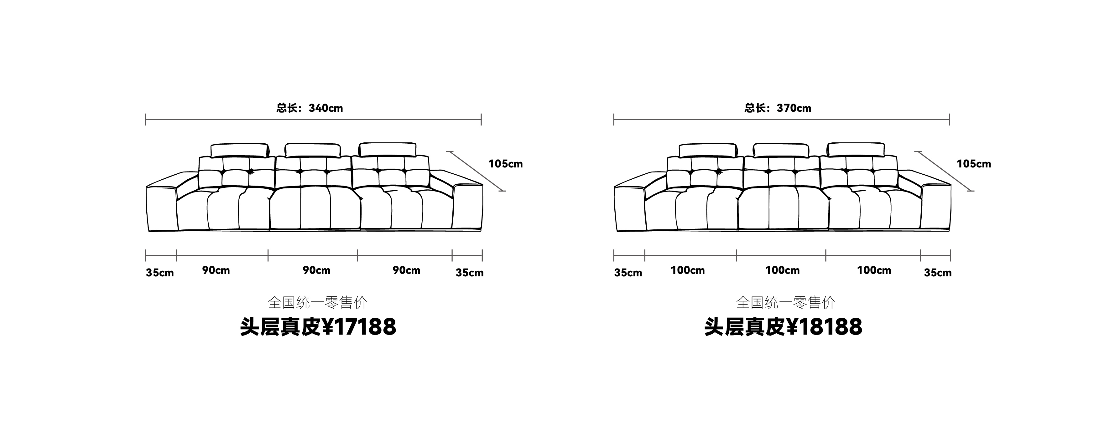 3、产品下单举例说明:本产品定做尺寸为370cm,定做模式为(外挂双扶手+三件三垫)的情况下订单举例:迪兰沙发TS-009-(1)B 总长370cm(外挂右扶手35cm+一件一垫100cm)+(无扶手一件一垫100cm)+(外挂左扶手35cm+一件一垫100cm)