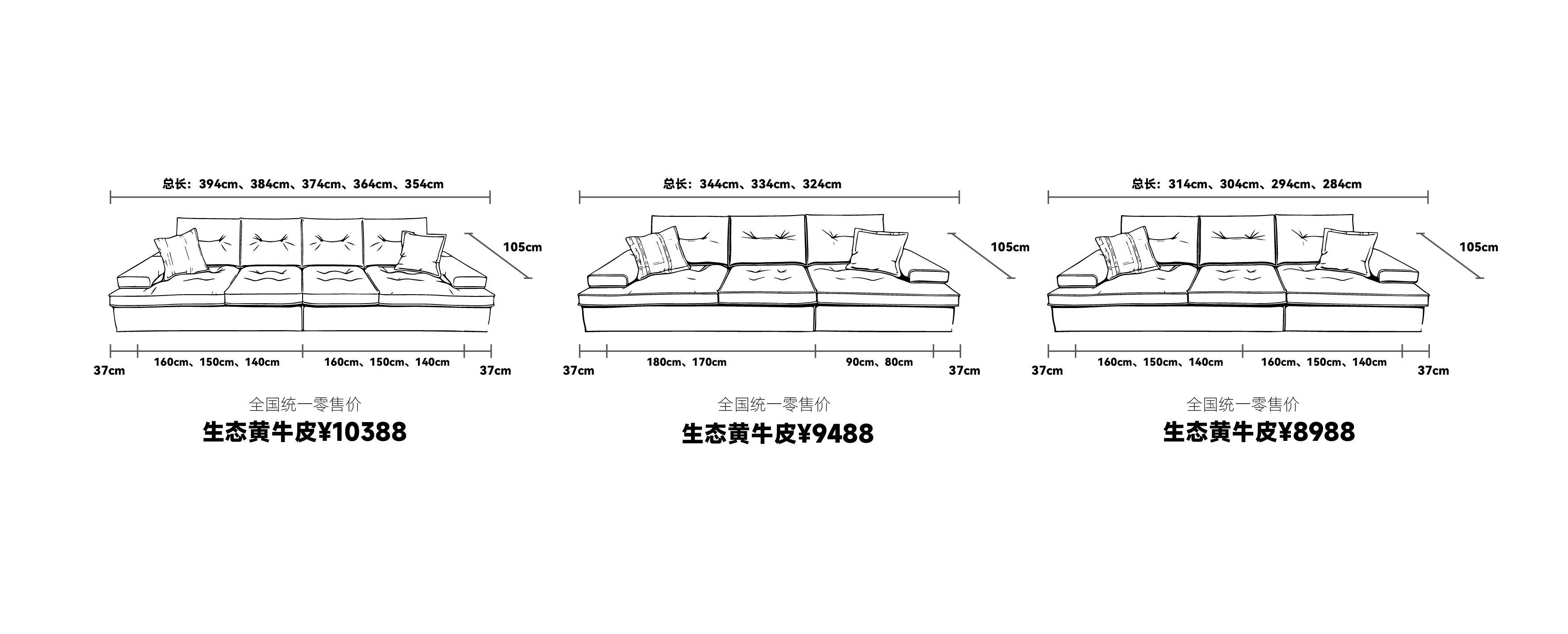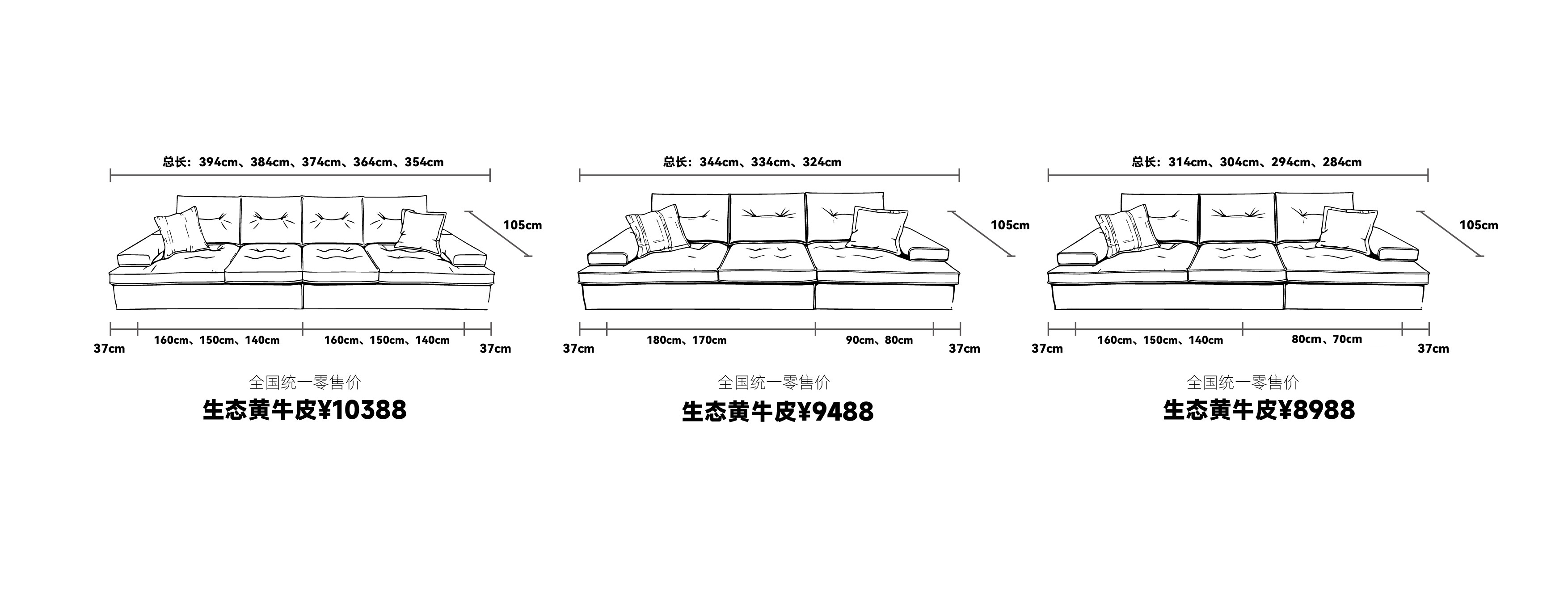 3、产品下单举例说明:本产品定做尺寸为314cm,定做模式为(上托双扶手+二件三垫)的情况下订单举例:自在家沙发SS-059-(3) B 总长314cm(上托右扶手37cm+一件二垫160cm)+(上托左扶手37cm+一件一垫80cm)
