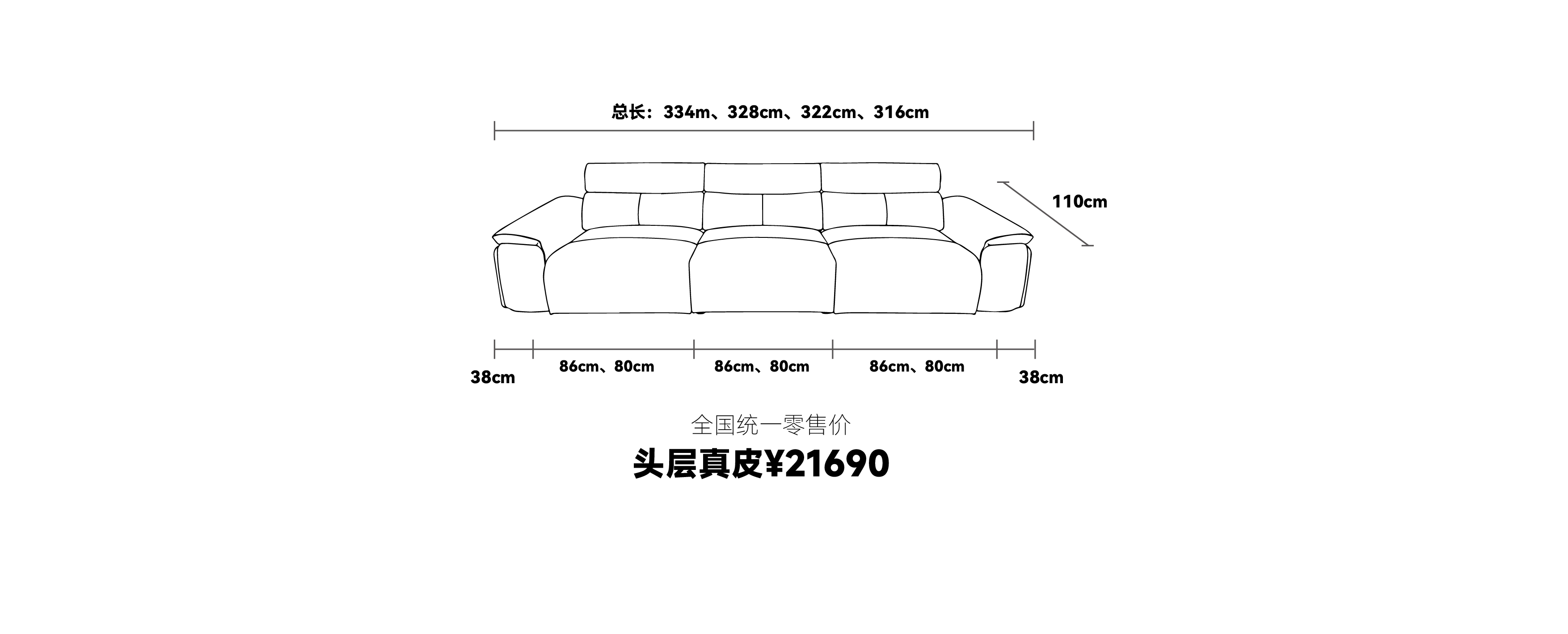 3、产品重量说明:外挂右扶手38cm+一件一垫86cm重量约为91kg;无扶手一件一垫86cm重量约为65kg;总长三件三垫334cm重量约为247kg