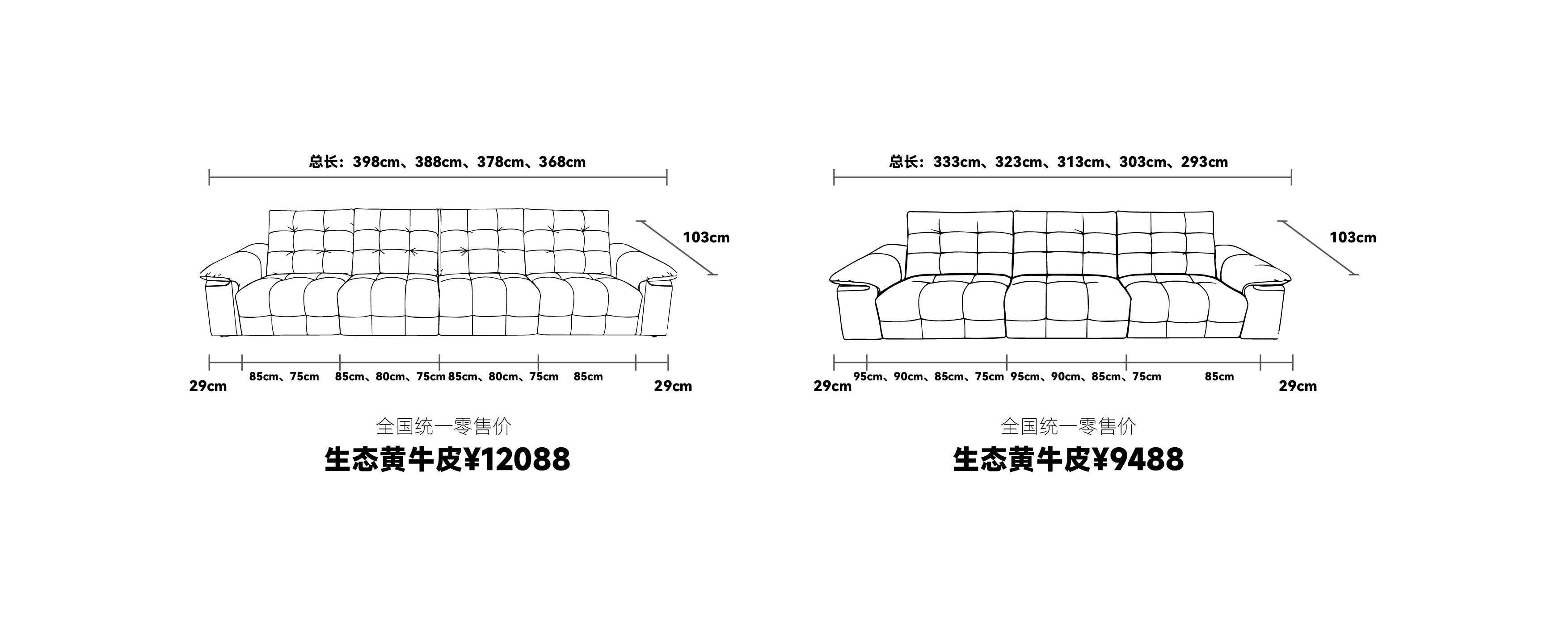 3、产品重量说明:85cm功能一件一垫重量约为70kg;90cm无扶手一件一垫重量约为40kg;90cm偏扶手无功能一件一垫重量约为60kg;总长三件三垫323cm重量约为170kg
