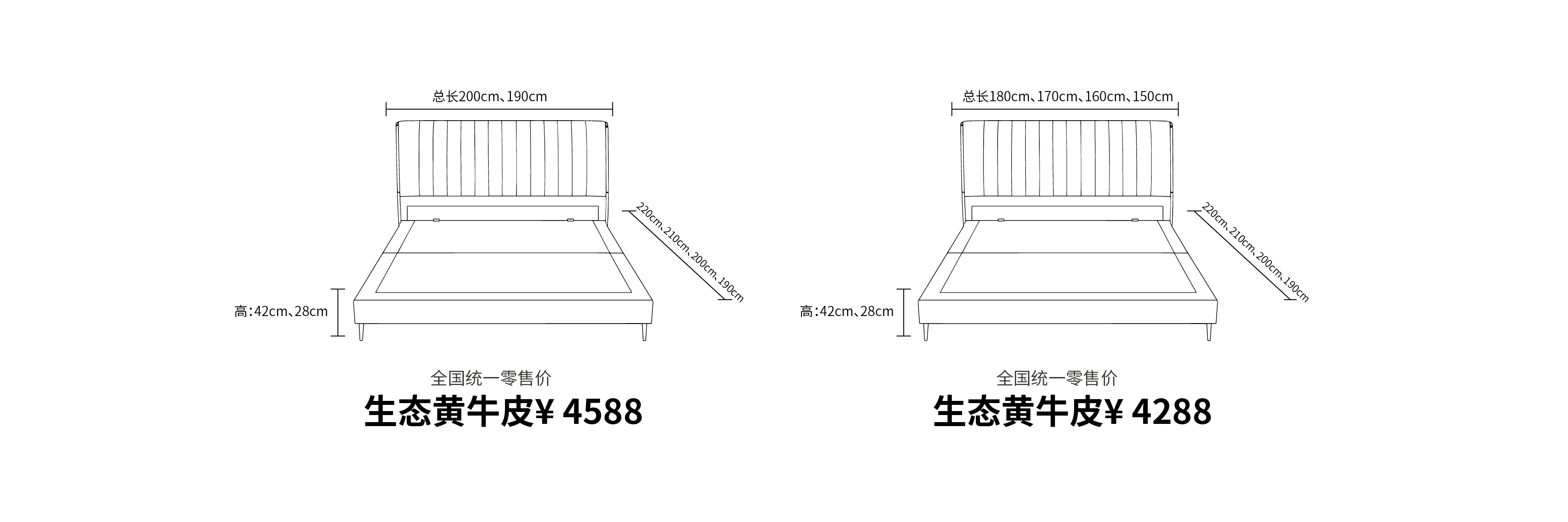 3、订购本产品其中一种尺寸的订单填写举例:范登堡软床SS-028-(1)A -整装座(长200cm*宽180cm*高28cm)+床头