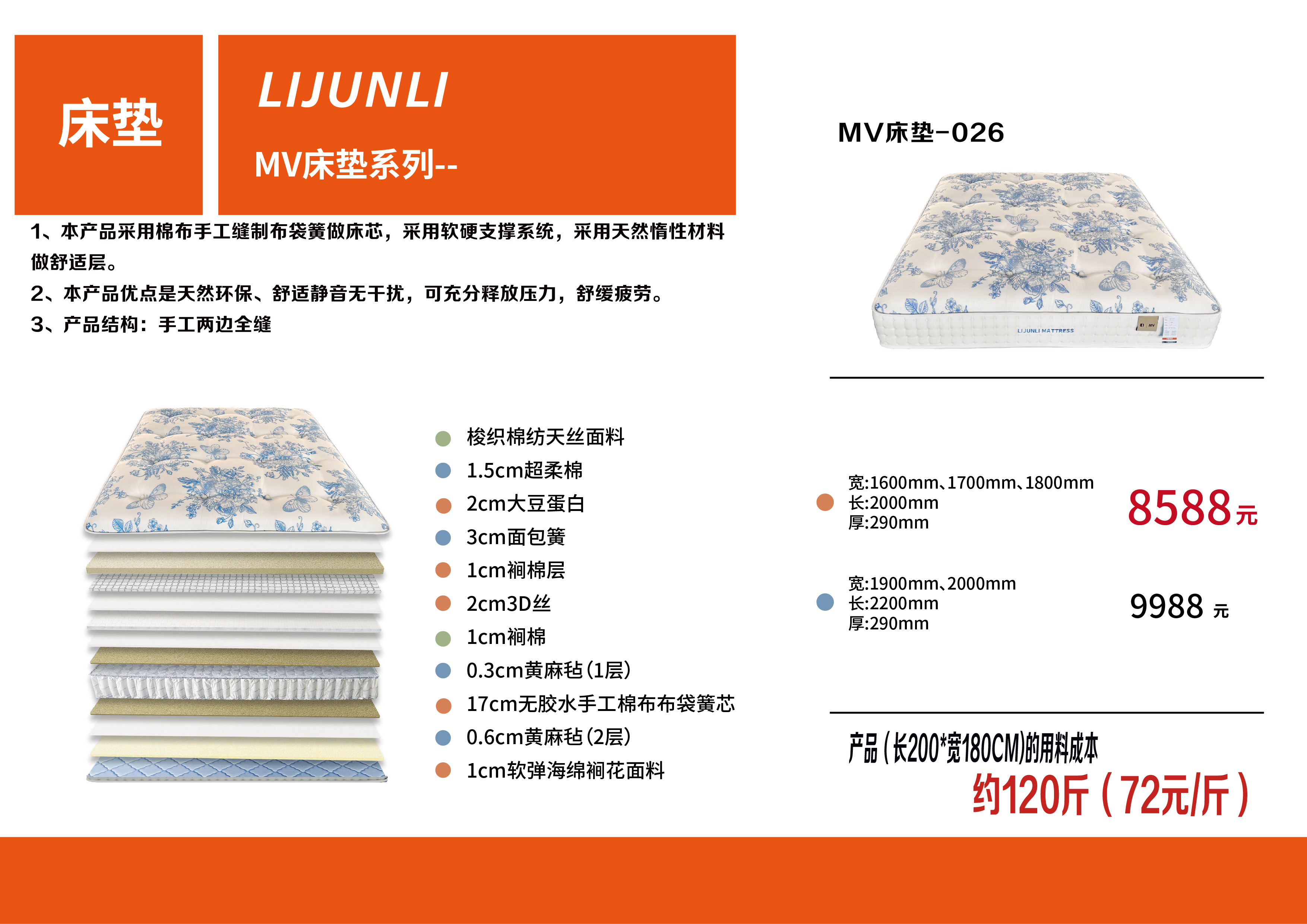 3、订购本产品其中一种尺寸的订单填写举例:MV床垫-026 1800mm*2000mm*290mm