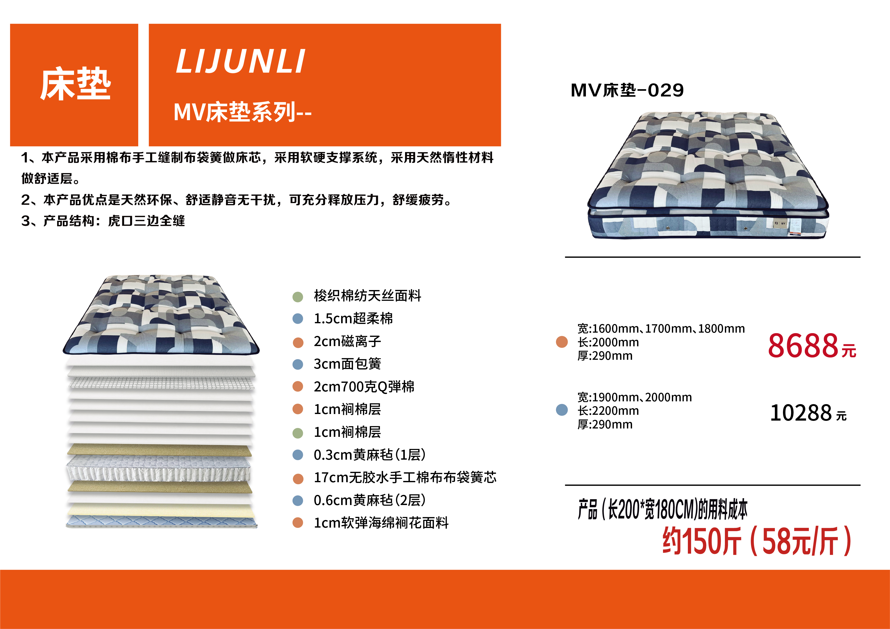 3、订购本产品其中一种尺寸的订单填写举例:MV床垫-029 1800mm*2000mm*290mm