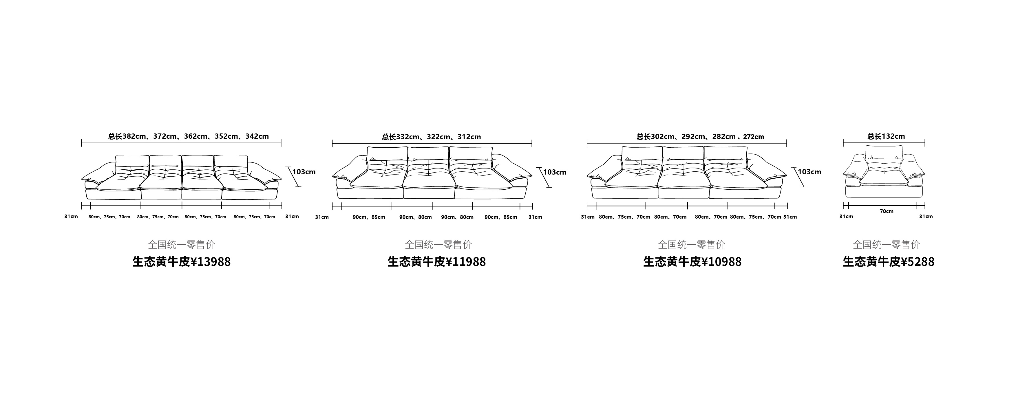 3、产品下单举例说明: 本产品定做尺寸为82cm,定做模式为(上托双扶手+三件三垫)的情况下订单举例:迪兰沙发S-07-(2)A总总长332cm(上托右扶手31cm+一件一垫90cm)+(天扶手+一件一垫90cm)+(上托左扶手31cnt一件一垫90cm)