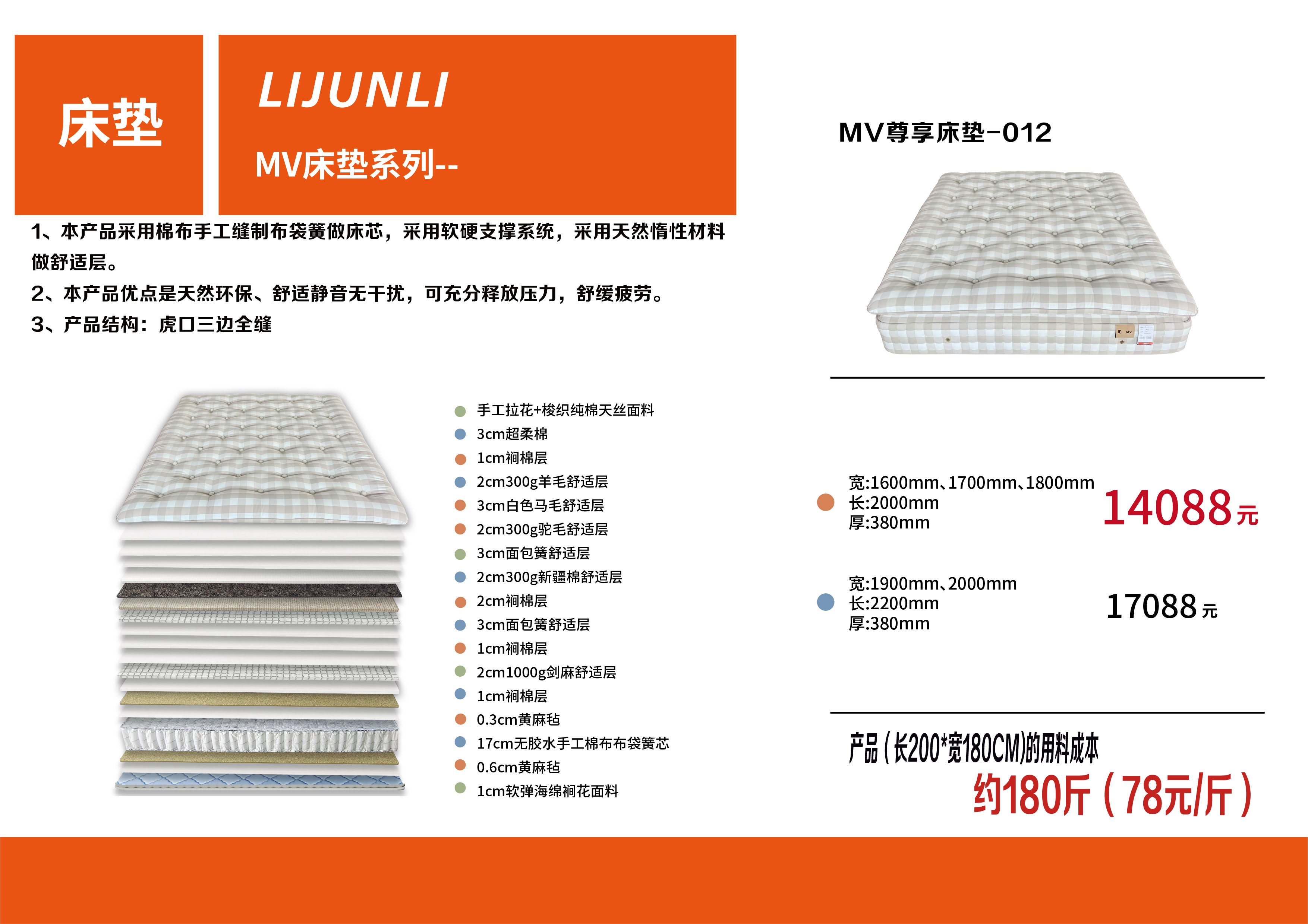 3、订购本产品其中一种尺寸的订单填写举例:MV尊享床垫-012 1800mm*2000mm*380mm