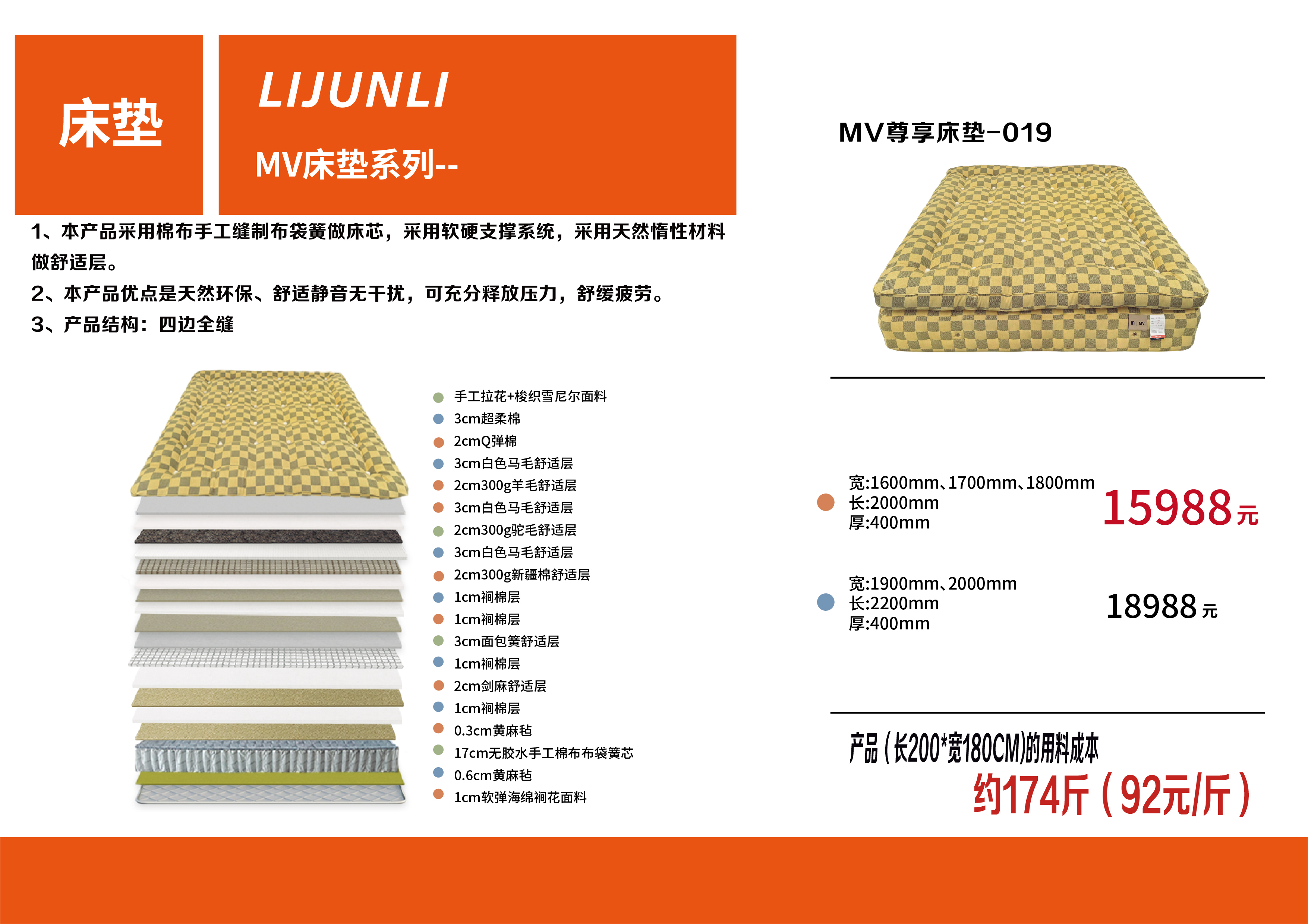 3、订购本产品其中一种尺寸的订单填写举例:MV尊享床垫-019 1800mm*2000mm*400mm