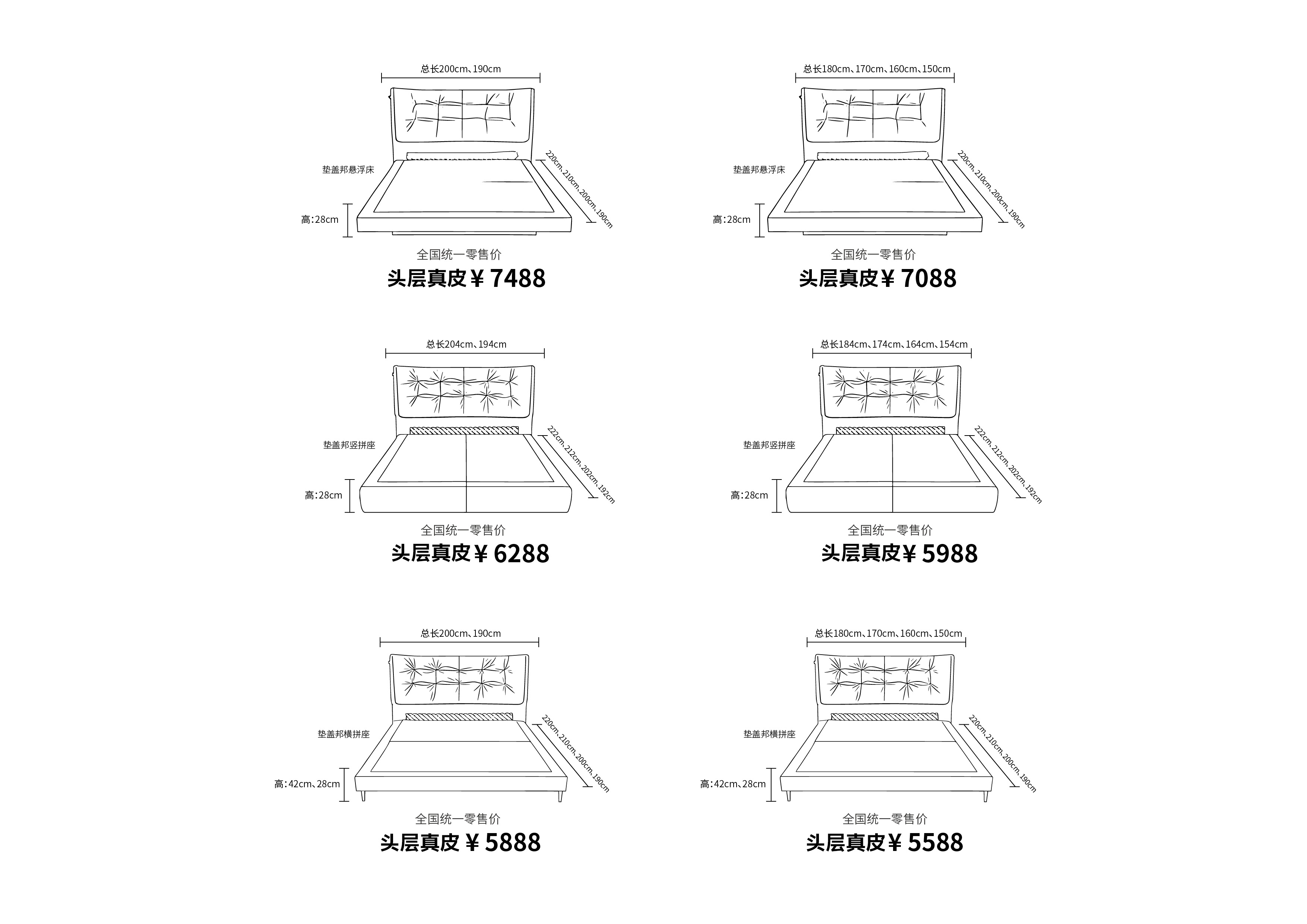 4、订购本产品其中一种尺寸的订单填写举例:意式米兰软床TS-011-(1)A (长200cm*宽180cm*高28cm)+床头