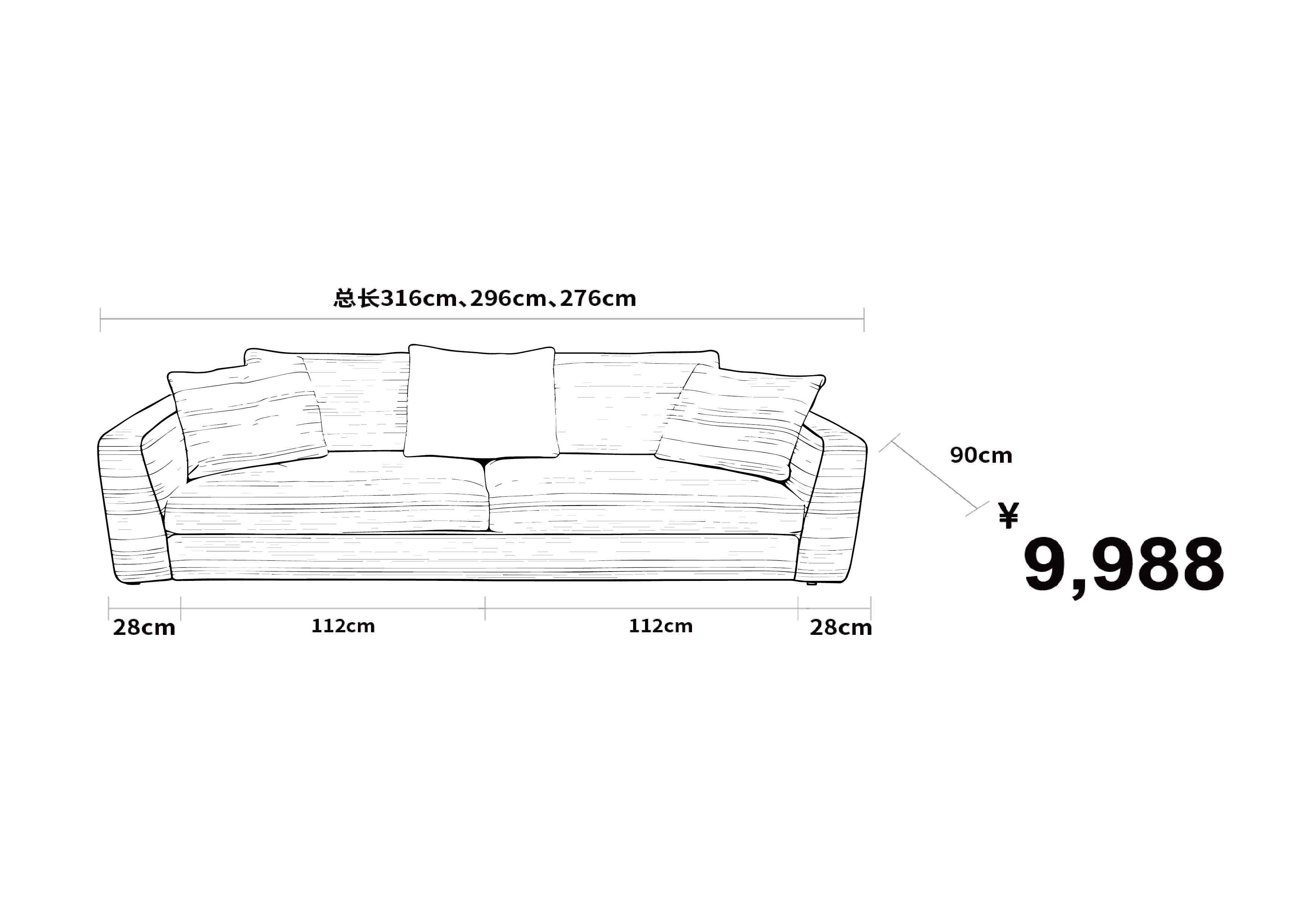 4、 产品下单举例说明:本产品定做尺寸为316cm,定做模式为(外挂双扶手+二件二垫)的情况下订单举例:自在家沙发BB-061-(1)C 总长316cm(上托右扶手28cm+一件一垫130cm)+(上托左扶手28cm+一件一垫130cm)